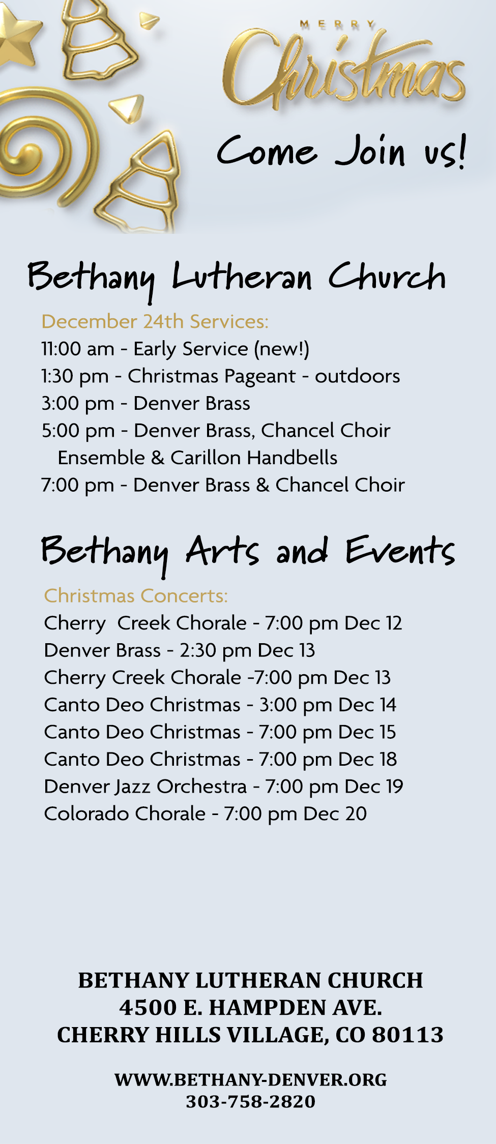 Bethany Arts and Events is a vibrant hub for music, creativity, and community gatherings. Our campus hosts a wide variety of concerts and recitals throughout the year, showcasing talented local, regional, and national artists. We also support a thriving network of weekly rehearsal groups, providing an inspiring space for musicians and ensembles to grow and collaborate.